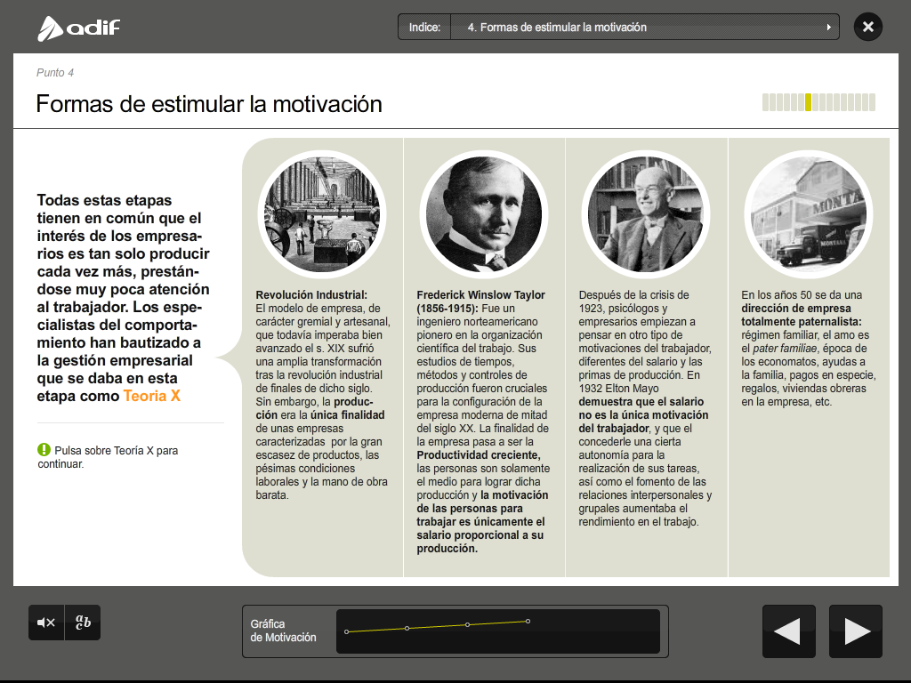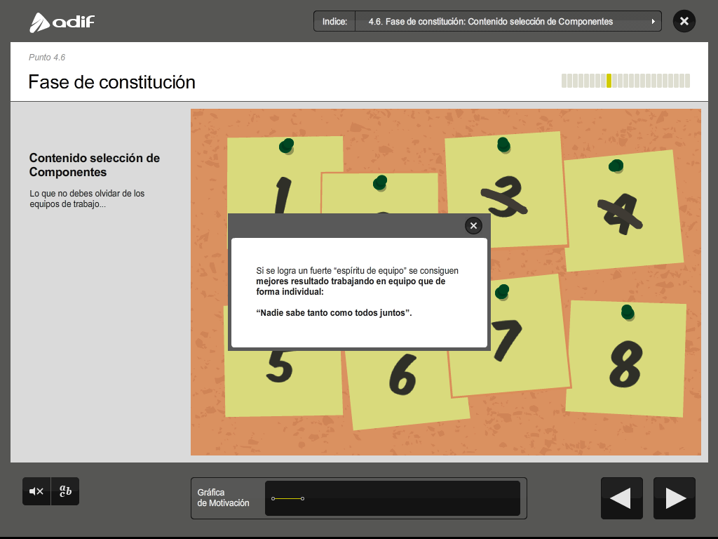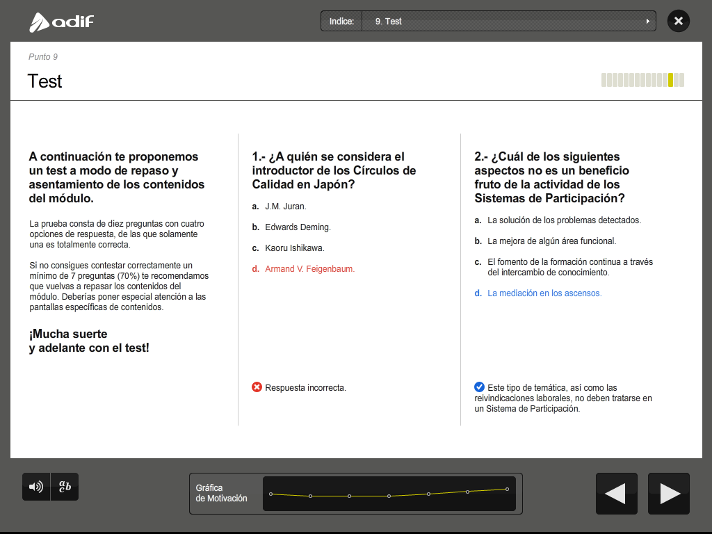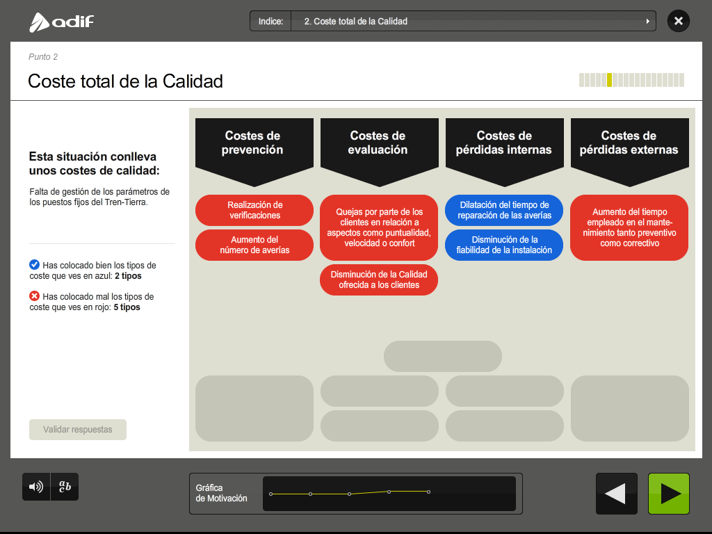 Art direction, graphic design and production of a flash training course for the employees of ADIF (Railway Infrastructure Administrator of Spain).