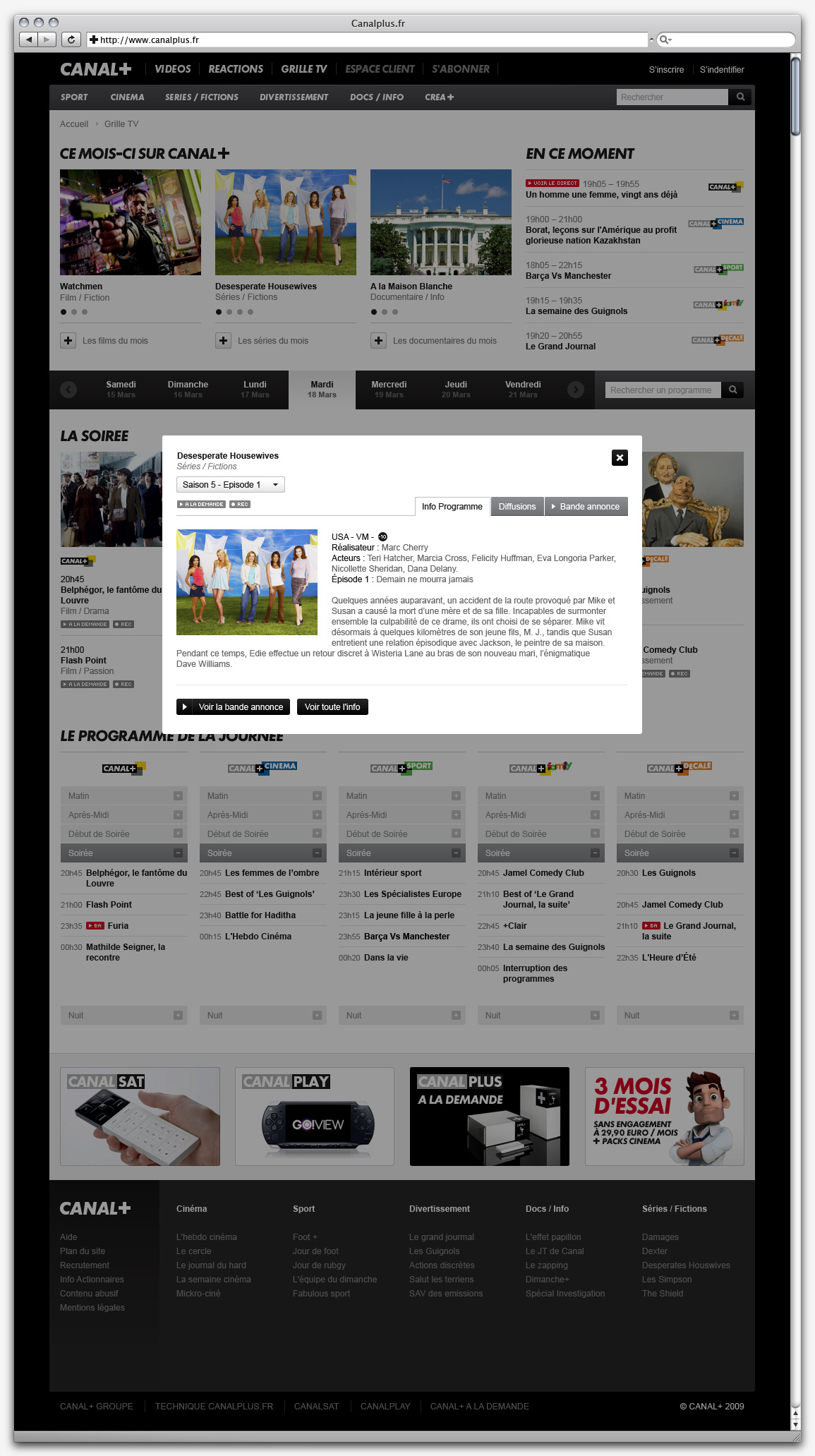 Website redesign for Canal+ France in collaboration with Area17 Paris.